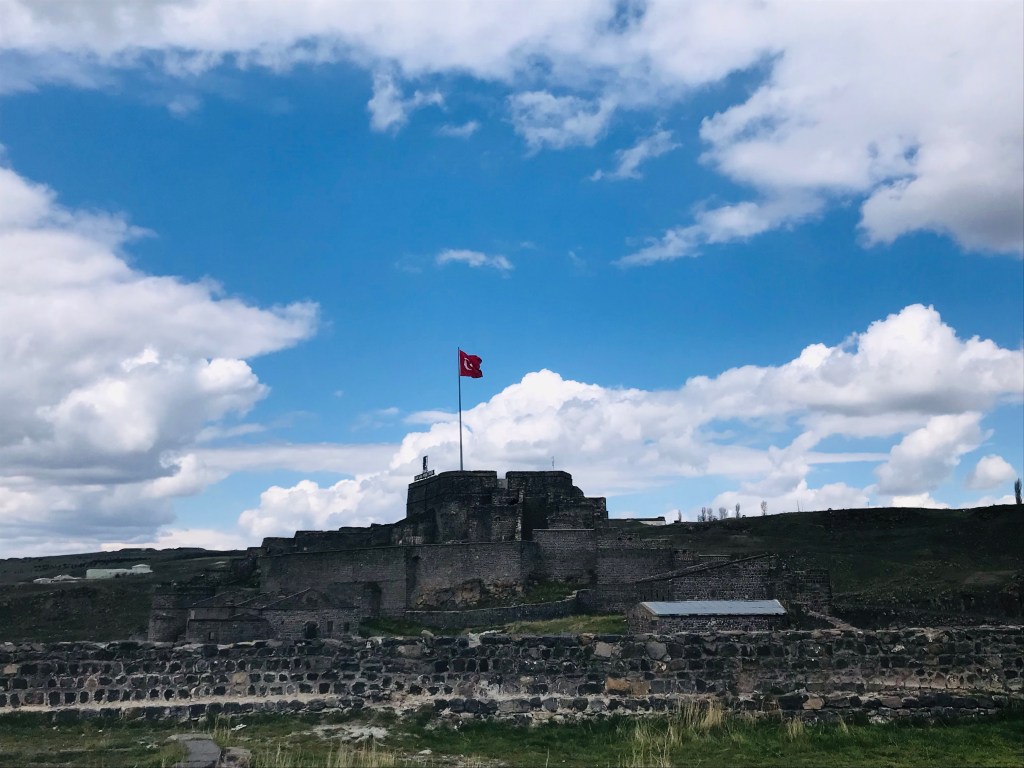 Les ruines de l’imposant château qui surplombent la ville, témoignent de son passé, riche et mouvementé. Ce fut jadis un centre de civilisations important où les peuples se sont succédés. Aujourd’hui en se promenant dans ces ruines, on sent se dégager un parfum de solitude, par les travaux de modernisations des alentours. Seule la forteresse, la mosquée et l’ancienne église rappellent les couleurs du passé. On y croise deux vieilles âmes qui viennent admirer les hauteurs de Kars. Du haut du chateau, la vue panoramique sur des kilomètres, traduit encore de la position stratégique de la ville.