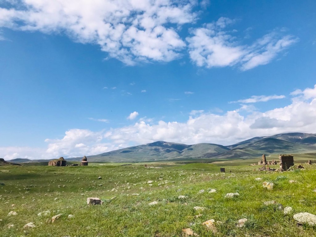 En sortant de la ville, il suffit de rouler 30min pour se retrouver à Ani, ancienne capitale arménienne. Les steppes, les sommets enneigés et les oiseaux chantant, nous offrent un spectacle exceptionnel.