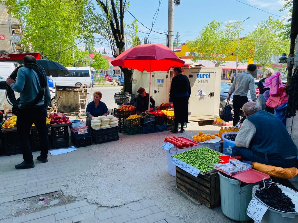 Le bus s’arrête dans le centre-ville d’Akhaltsikhe, un gros bourg avec un marché important, à une vingtaine de kilomètres de Vale, une trentaine de la frontière turque. Il n’ira pas plus loin, il nous faudra continuer en stop.