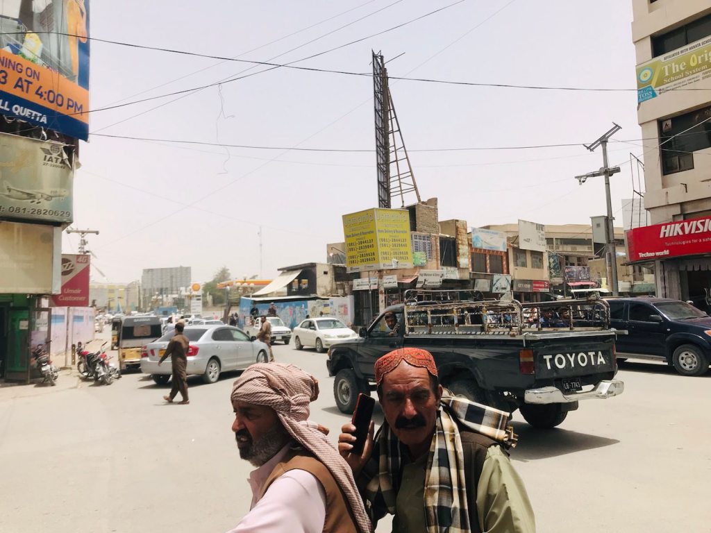 Le lendemain matin, l’escorte en tant que telle débute. Il s’agit de partir tôt et d’avaler le plus de kilomètres par jour. Le camping car des belges bouge beaucoup, nous ne sommes pas très bien installés, la route va être longue et surtout la chaleur devient suffocante. Il faut dire que l’on traverse un désert aride. Notre paysage est fait de sable, de poussière et de roche. Nous arrivons à Quetta après plus de 13h de route, lessivés. L’escorte militaire nous abandonne d’abord dans un hôtel un peu minable. Les prix sont exorbitants, même pour dormir dans le camping car sur le parking. On se dispute avec le patron en essayant de négocie, il nous vire. Pas le temps de se demander où nous atterrirons, nous sommes cueillis par une Jeep de militaires qui nous amène dans un immense commissariat. Quelque paperasse alors que nous sommes à bout de force, puis l’on se couche.
