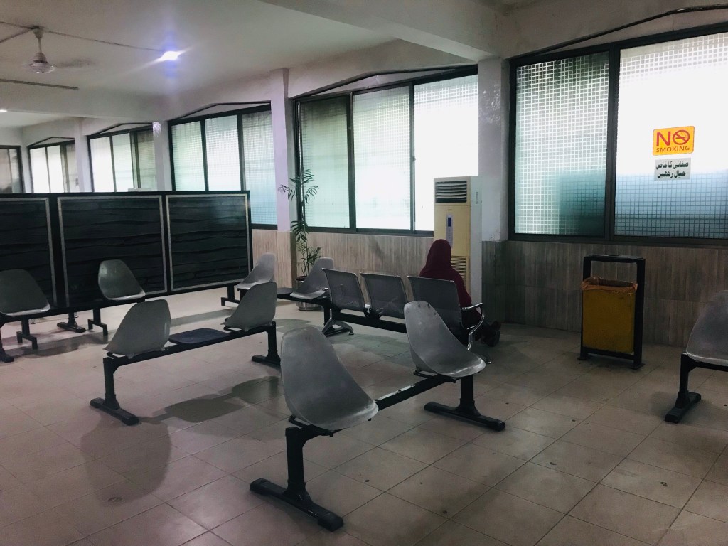 À Islamabad on fait plusieurs stations de bus pour trouver des places en direction de la vallée de la Hunza. Les trois premiers bureaux nous annoncent que les bus sont pleins jusqu’à la fin du mois. Déçus, nous partons marchander avec des petites compagnies installées dans la rue. Aux côté du bus, une table est disposée pour qu’un homme hèle des passagers. La compagnie Silk Road nous propose un voyage. Départ dans 1h. Je m’installe dans la salle d’attente réservée au femme pendant que Térence va décharger des bidons d’essence avec les hommes. Quelques minutes plus tard, notre compagnie s’excuse mais ne peux pas nous amener jusqu’à Hunza. Les billets remboursés, on repart en quête d’un nouveau bus.