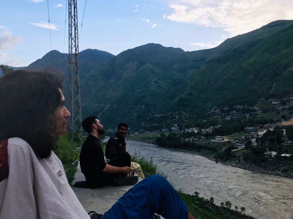 Nous parvenons à un point de vue sur Besham, de l’autre côté du fleuve. Là simplement assis sur le bord de la route, le village nous paraît presque beau. Nous sommes touchés par l’attention de notre guide improvisé. Il ne demande rien en retour que de partager ce moment de plénitude hors du temps.