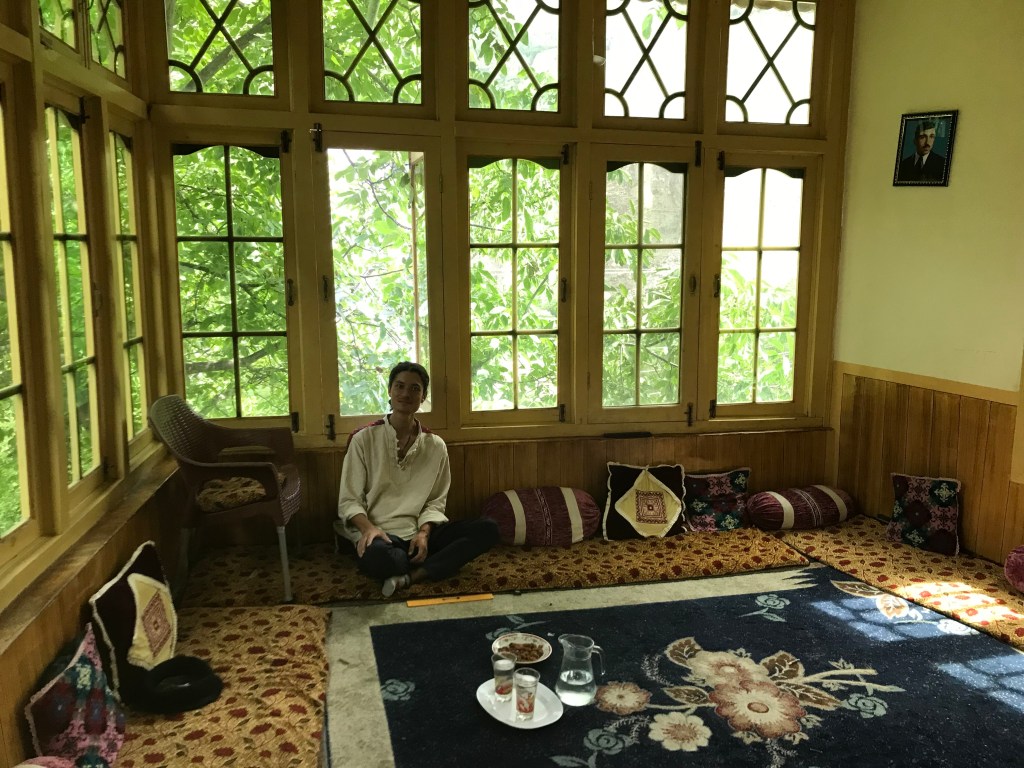 Aujourd’hui, les caravanes ont été troqués par des voitures et camions transportant marchandises et touristes à travers la vallée. Le village de Karimabad (Baltit), où l’on passe quelques jours, est devenu l’épicentre du tourisme ces dernières années, avec un nombre incommensurable d’hôtel, de restaurants et de boutiques d’artisanat local. Cependant l’ensemble de ces lieux reste possédé par des locaux. Ils vivent le développement touristique comme une aubaine pour palier aux aléas de l’agriculture. C’est donc entourés de touristes chinois et pakistanais, leur appareil photo à la main, que nous traversons ces rues pentues. Un soir, nous faisons la rencontre de Nazim. Les ancêtres de ce quarantenaire sont hunzakuts et il a hérité de nombreux vergers en terrasse qu’il nous présente avec passion. Il a bâti des bungalows en terre-paille et ouvert un « éco-resort« . Anthropologue dans l’âme, guide touristique de profession, il se met en tête de nous faire découvrir sa culture.