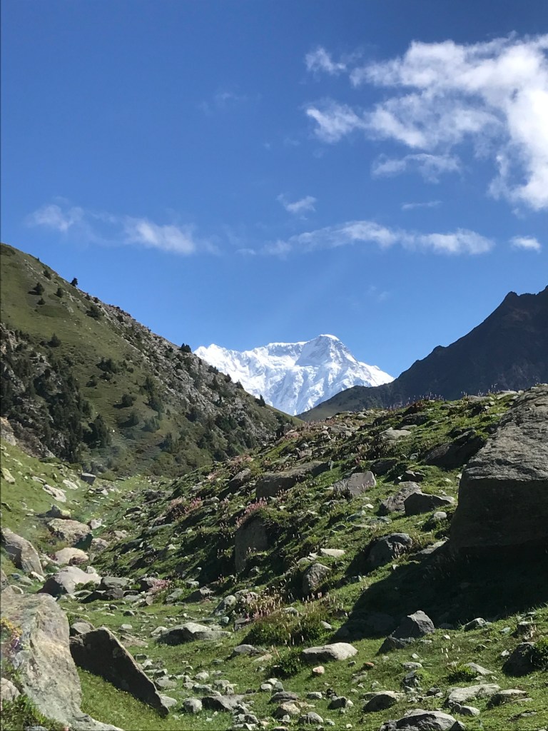 Arrivés au Pakistan, je découvre surprise, que ce pays s’étend au nord sur des joyaux de l’Himalaya : on y trouve 108 sommets dont l’altitude dépasse les 7000 mètres, plusieurs autres centaines de sommets culminent au dessus des 6000 mètres d’altitudes. Les sommets de 4000 et 5000 mètres d’altitude ne sont pas dénombrés tant ils recouvrent le paysage de l’Himalaya pakistanais. Enfin, les pakistanais•es sont fières de nous rappeler que 5 des 14 sommets de plus de 8000 mètres, sont situés au Pakistan. Le K2, second sommets après le mont Everest (Népal) est l’emblème du pays.