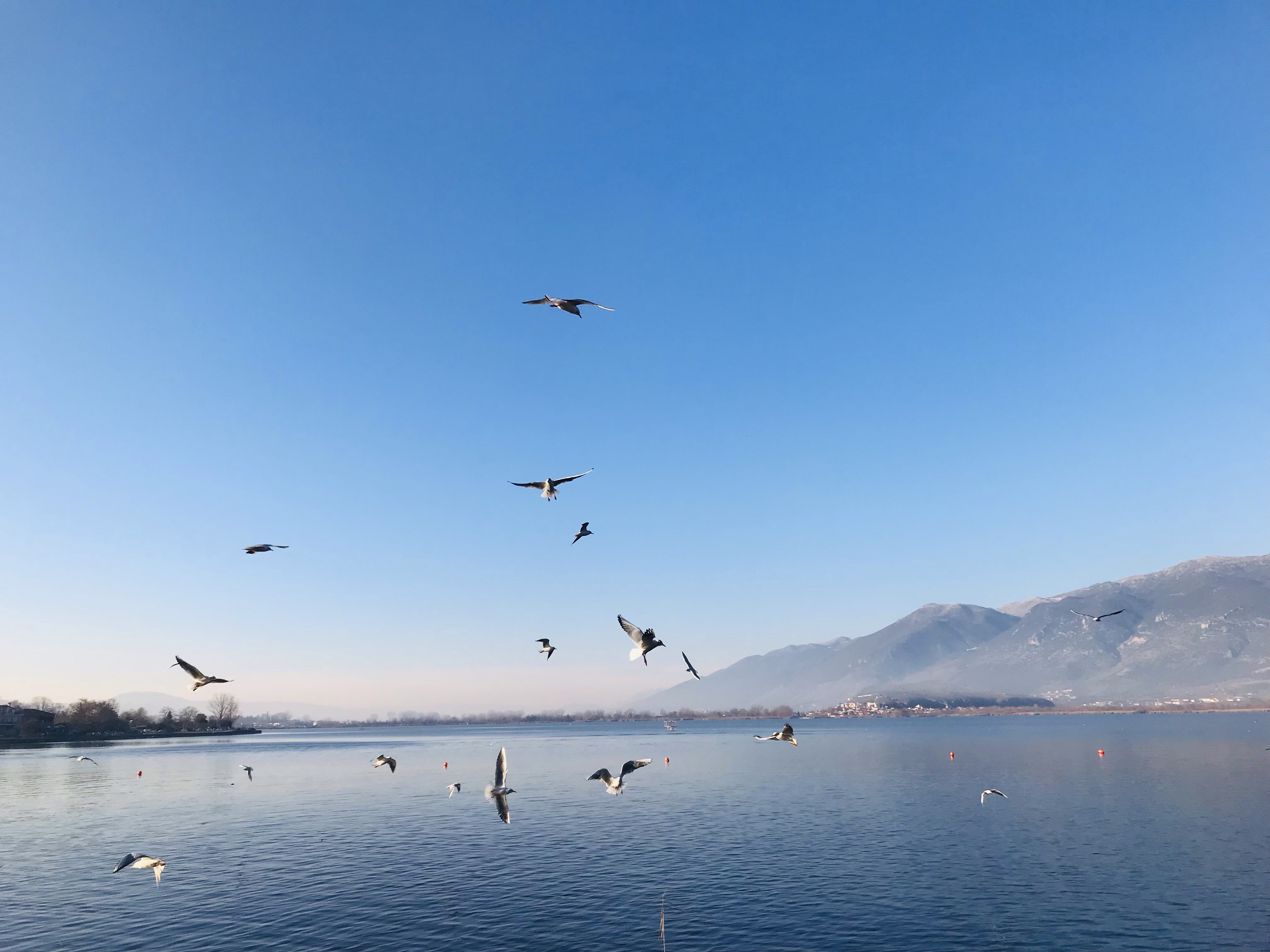 Nous traversons la frontière le 3 janvier à 10h, un pas plus tard, il est 11h et nous sommes en Grèce. Nous rigolons du fait qu’un seul pas pile par dessus un fuseau horaire puisse nous faire faire un bond de 60 minutes. Après le check de nos passeports, nous nous positionnons pouce levés sur la grande route qui part vers la ville. Peu de temps plus tard, Spiros et son père nous accueillent dans leur voiture. On partage des clémentines. Tous deux habitent Ioannina, et veulent pour leur jour de congé aller visiter Gjirokaster en Albanie. Mais Spiros a oublié son passeport, ils repartent donc en sens inverse pour récupérer leur papiers. Arrivée à Ioannina on découvre la ville et les us grec, on mange un gyros et on part à la quête d’un lieu où dormir. Ioannina se trouve au abord d’un très beau lac.