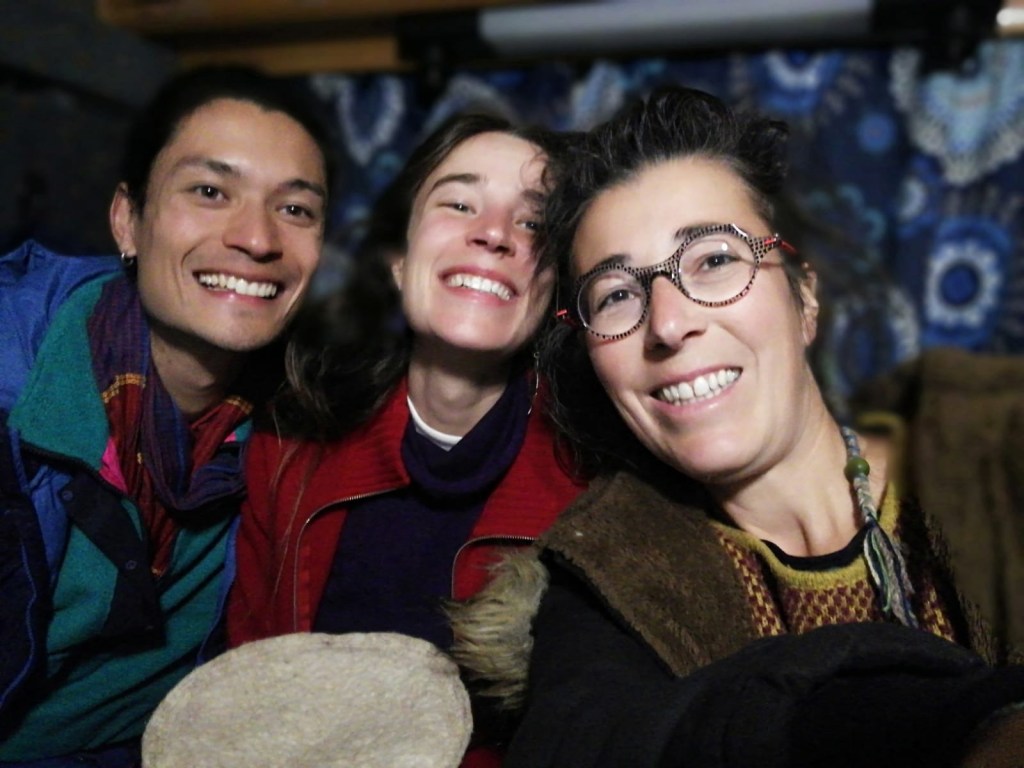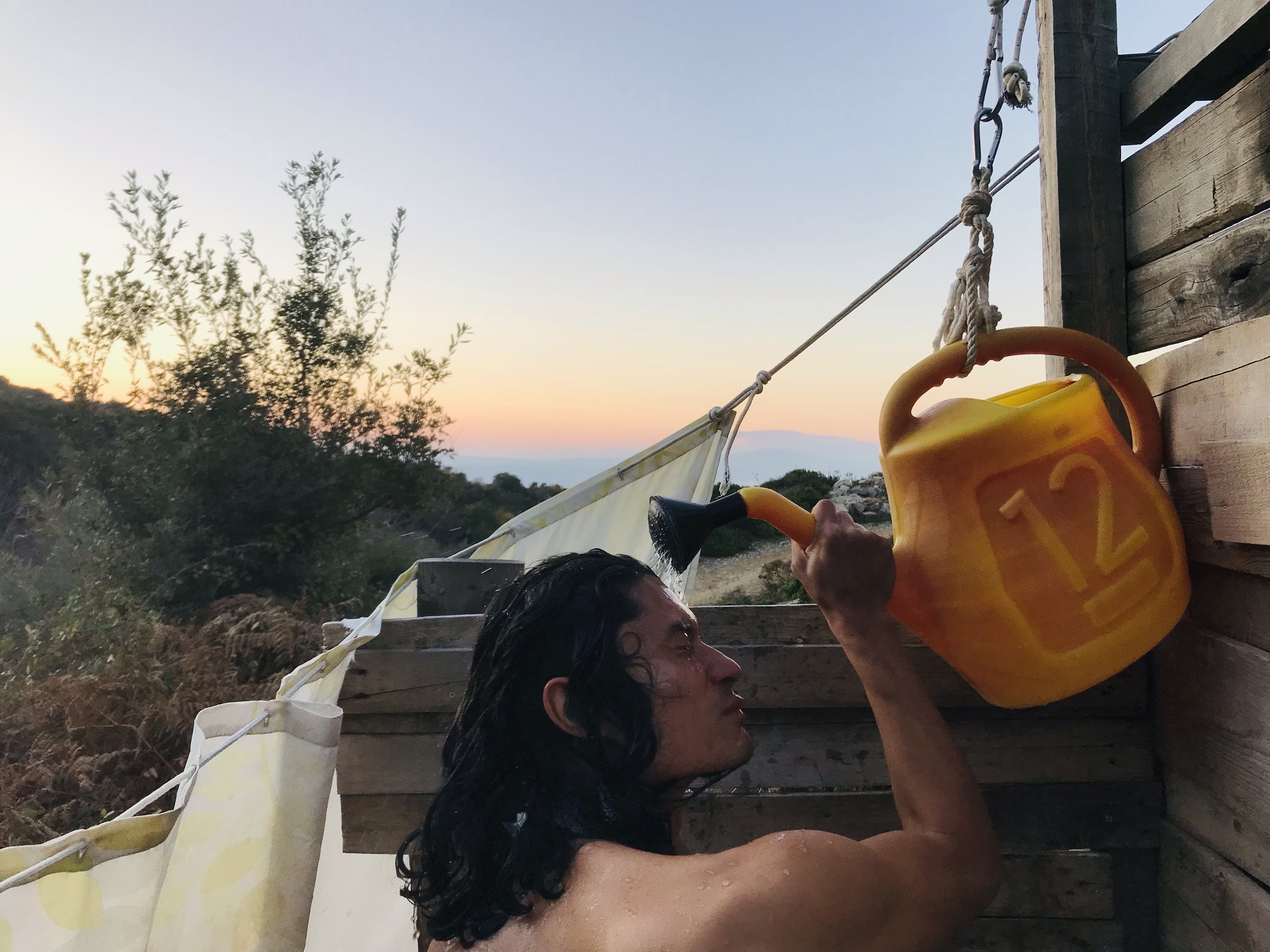 Chez Ilektra c’est plus roots ! Pas l’eau potable, une seule petite maison pour nous abriter du froid et cuisine en extérieur. Nous vivons et dormons avec Joyce, Vasilis, Mira, Aude, Ilektra, les chiens, chats et chèvre.